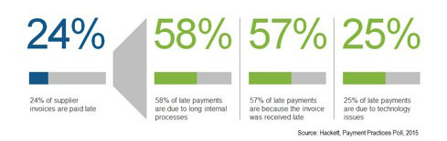 New Hackett Group research has found that nearly one-quarter of all supplier invoices are paid late (Fig. 1). Despite the working capital benefits, only a very small percentage of respondents to The Hackett Group’s Payment Practices Poll, intentionally pay suppliers late.