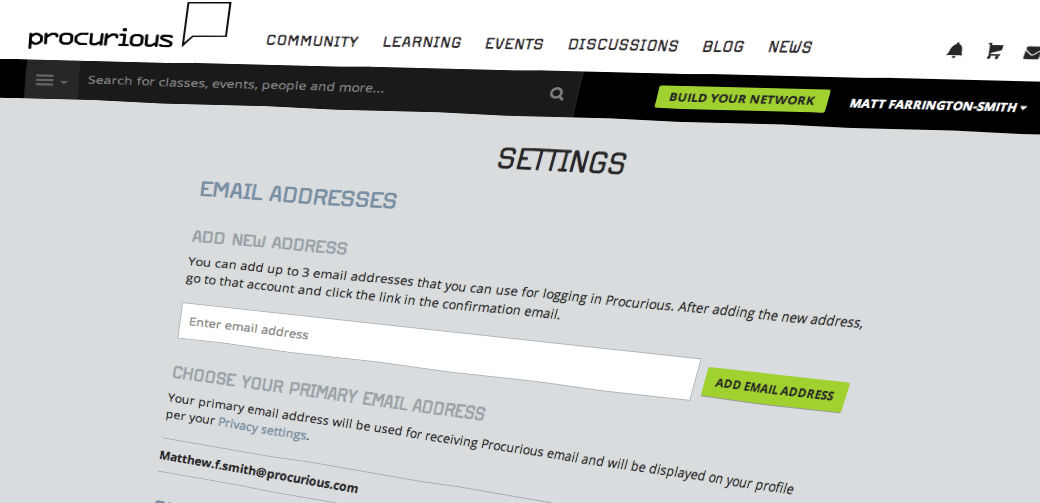 Well it seems we have arrived at something of an impasse… Happily this isn’t the case if you’re a Procurious user! You can now associate up to three different email addresses with your Procurious account