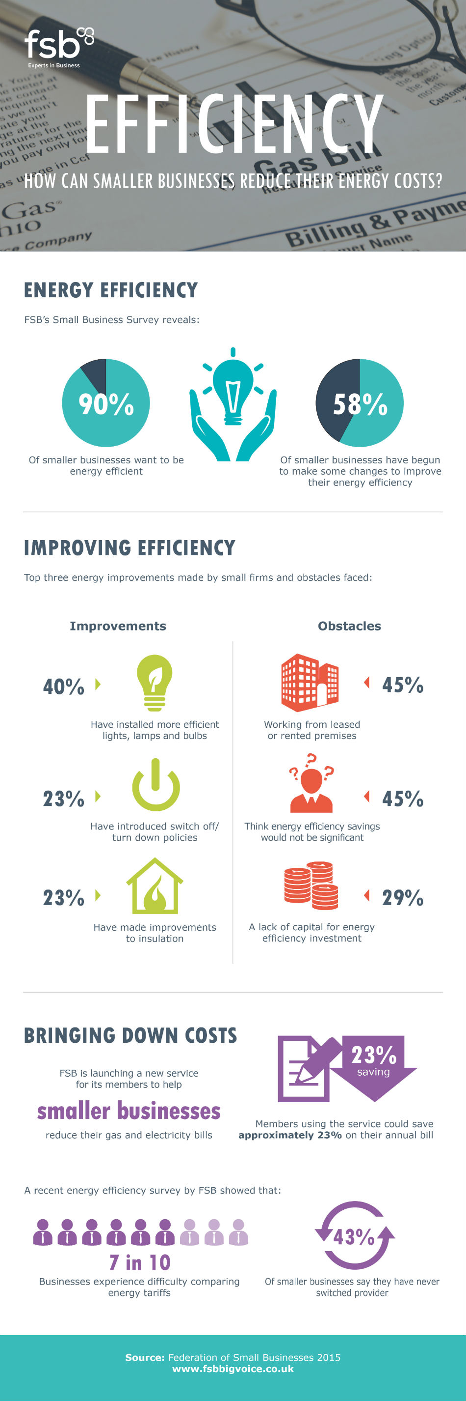 Dave Stallon, Operations Director at FSB, said: “Energy is an increasingly important issue for smaller businesses. There are many ways they can make substantial savings through the implementation of energy efficiency measures as well as ensuring they get the best tariff they can on their gas and electricity. Many smaller businesses, however, either don’t believe they can make substantial savings or haven’t trusted the market and the system enough to engage in the process.