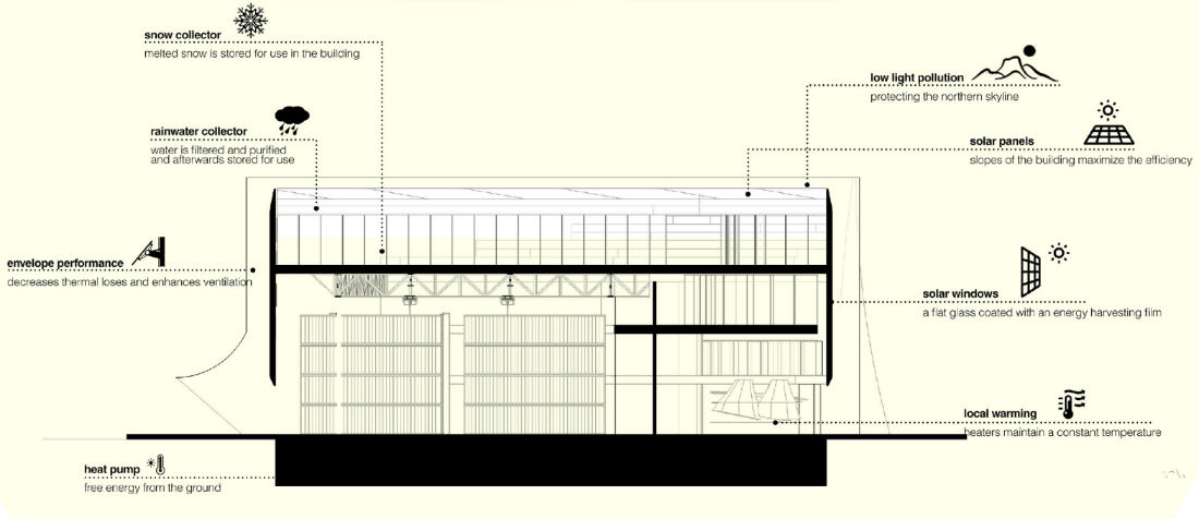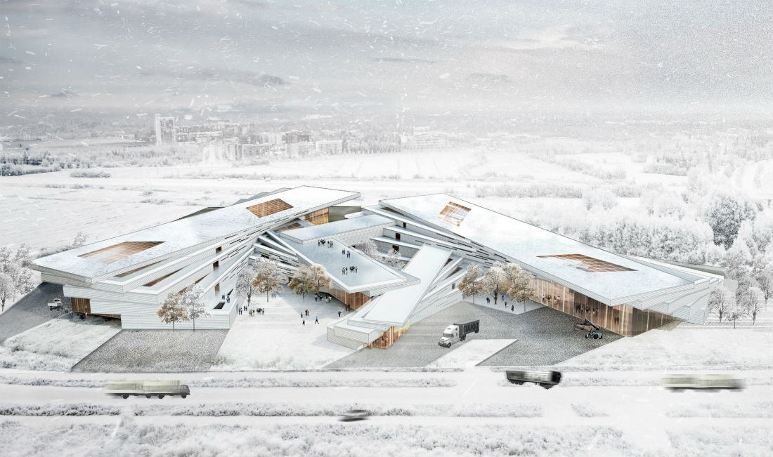 They continued: “The idea could be realised without sacrificing any of the practical or economic aspects of the logistics centre. It provides understandable solutions for energy efficiency and attempts to introduce a lot of good thinking about how to utilise this within the building. It also has a good understanding of the local situation. The entry seeks to embrace and enhance the function of the building as a hub for new technology in addition to the logistics centre – it connects well with Oulu as a city.”