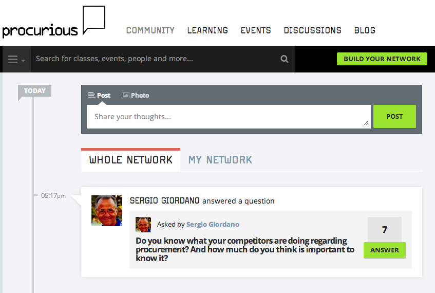 If you want to keep an eye on everything happening on Procurious, the Whole Network view is for you. Unlike the My Network option, you will see every interaction in ‘almost’ real-time.